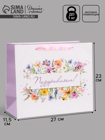 Пакет подарочный «Поздравляем. Цветы», 27×23×...