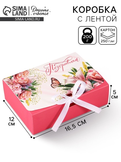 Коробка подарочная складная «Бант», 21×15×7 с...
