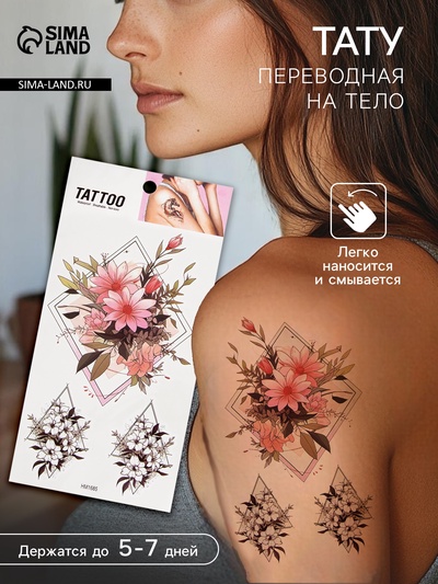 Переводные тату на тело цветные «Цветы в геом...