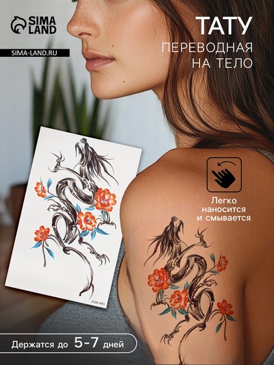Переводная тату на тело цветная «Дракон черни...