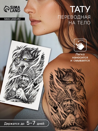 Переводная тату на тело чёрная «Вождь. Сопрот...