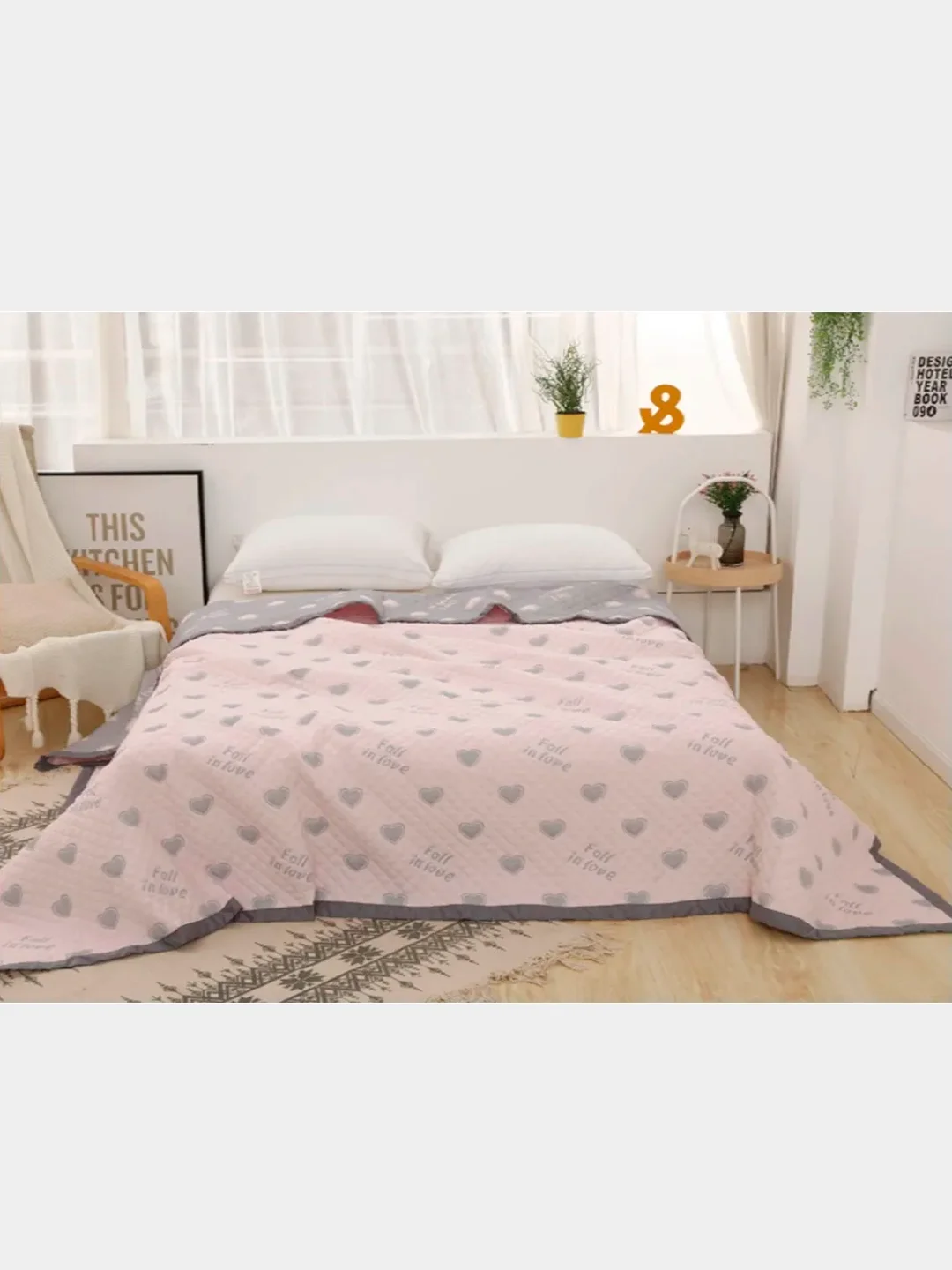 Плед детский "Розовые сердца", хлопковый, дву...