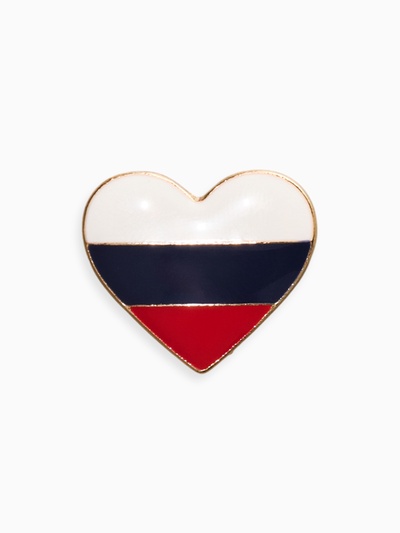 Значок «Россия» в сердце, цветной в серебре