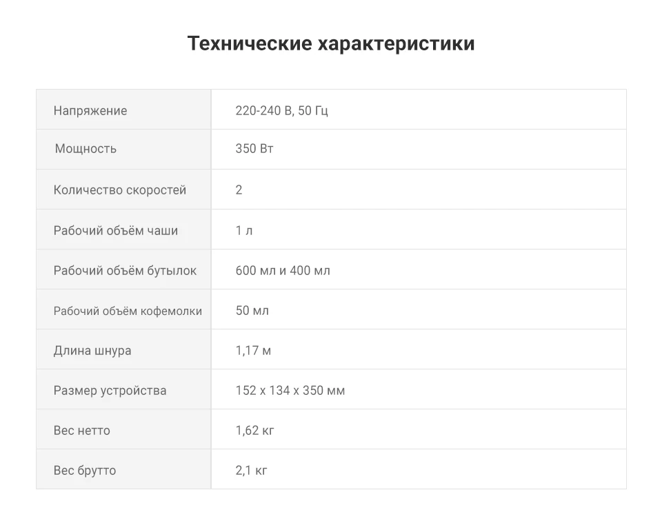 Рабочий объём кофемолки: 50 мл