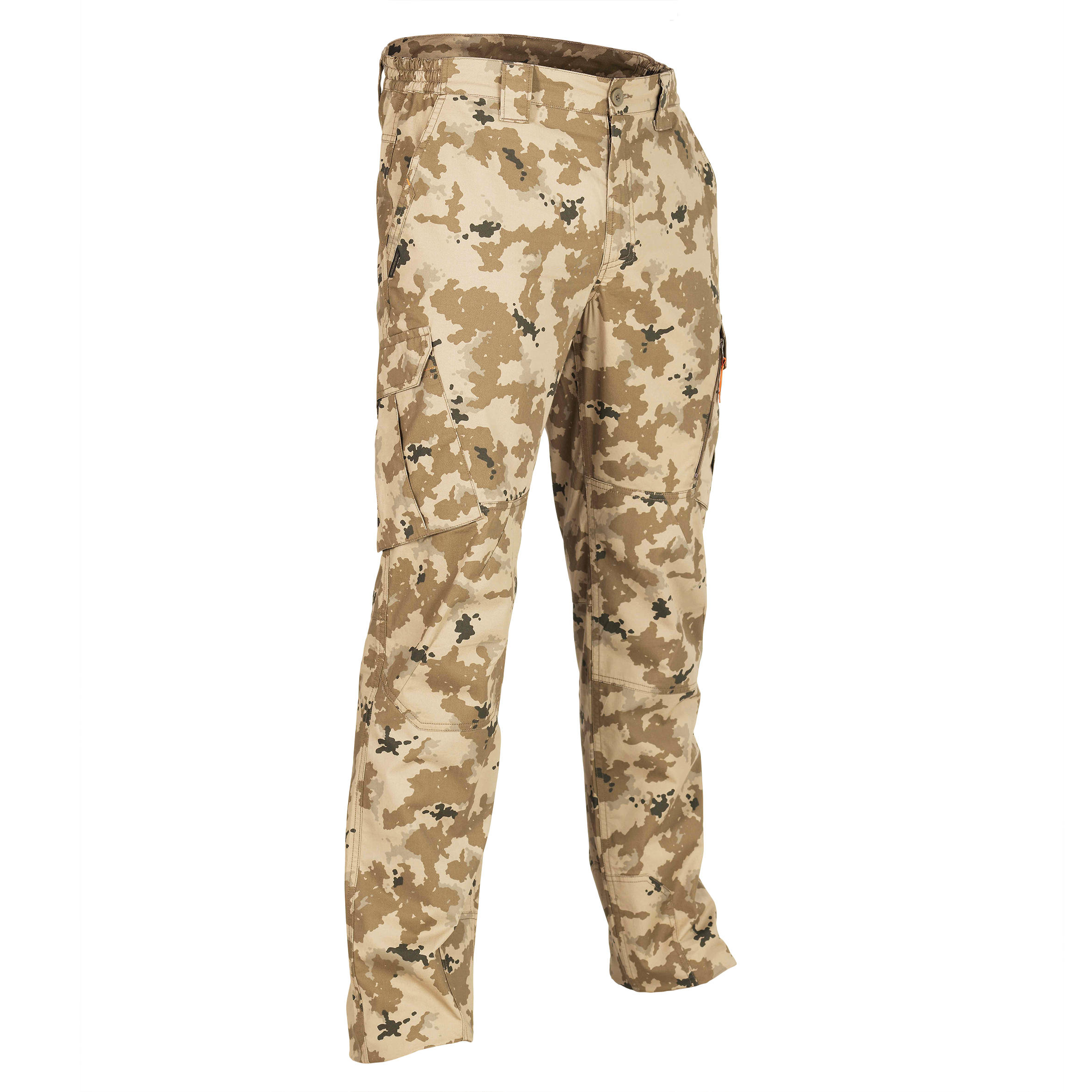 Пояс на резинке регулируется с помощью пуговиц, что обеспечивает возможность адаптации брюк к различному телосложению при одинаковом росте. Два кармана для рук и два боковых кармана на бедрах, включая один с молнией.