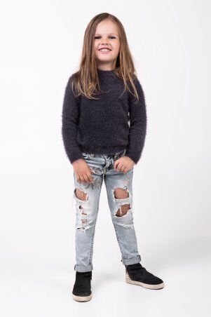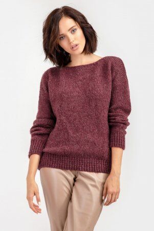 Актуальный джемпер свободного силуэта оверсайз выполнен в теплой смесовой пряже.