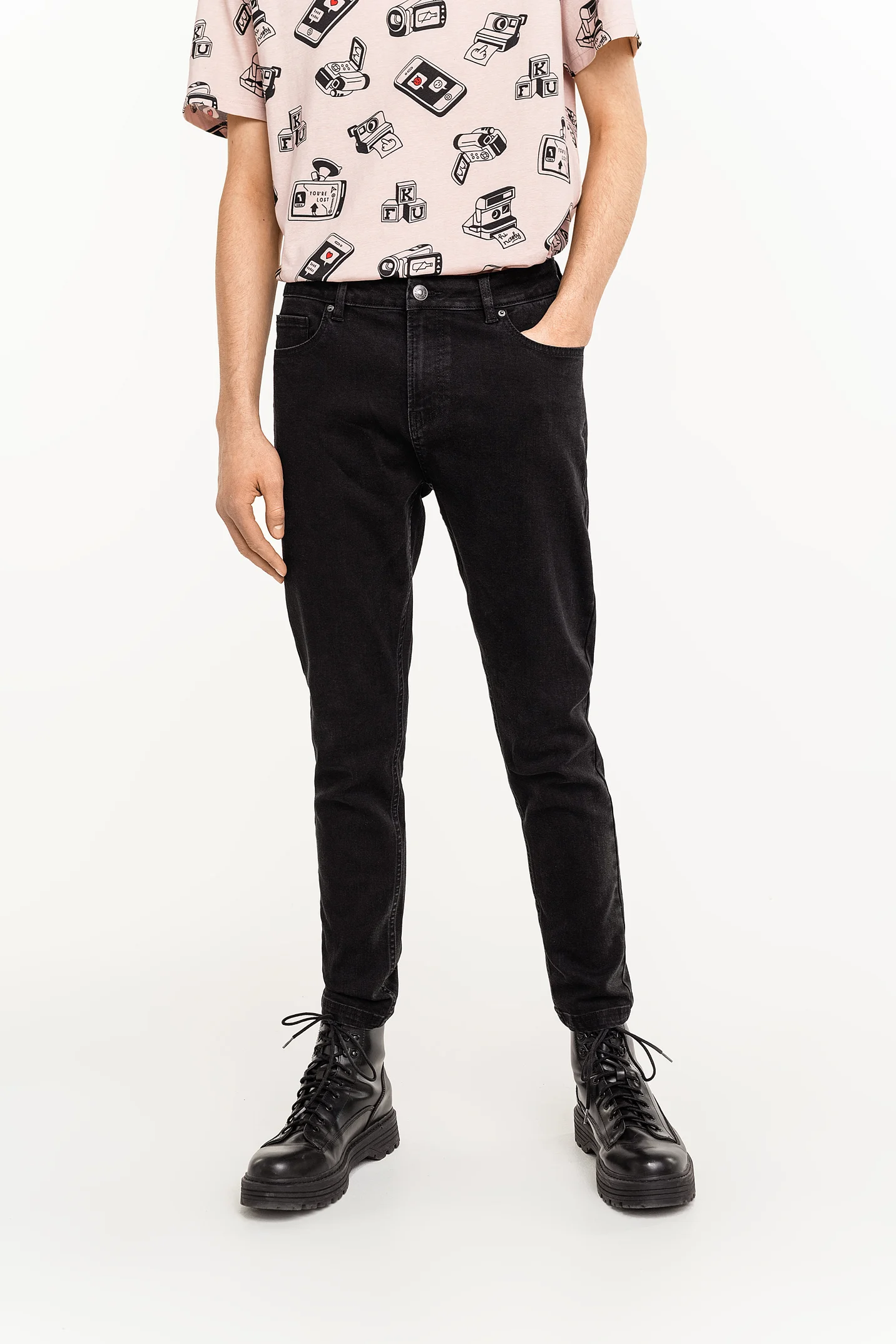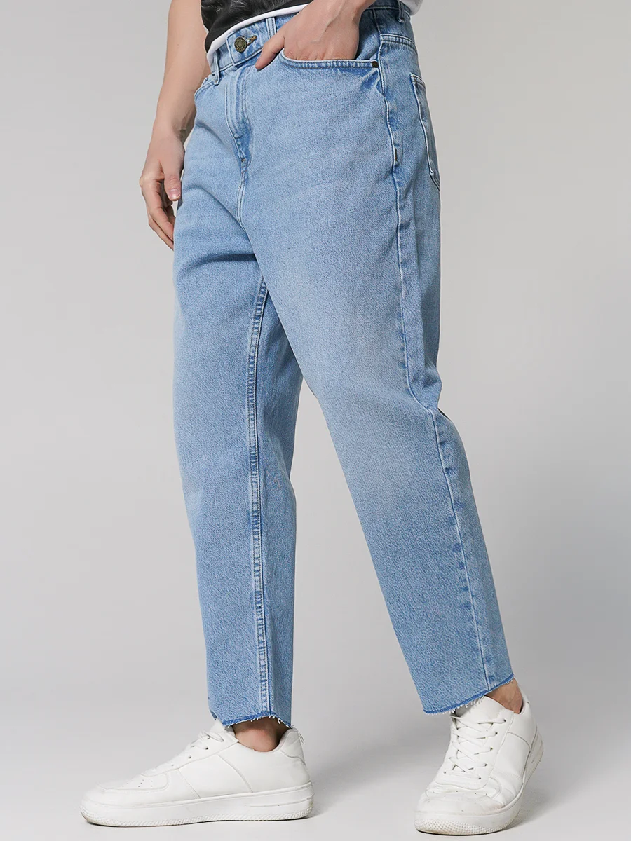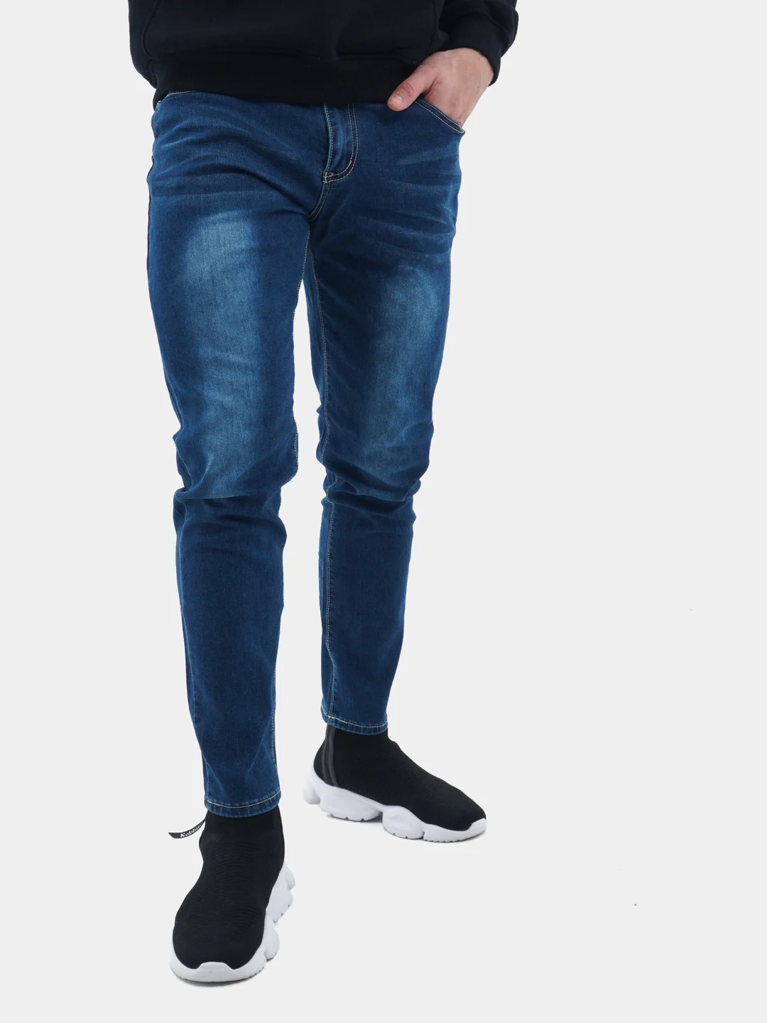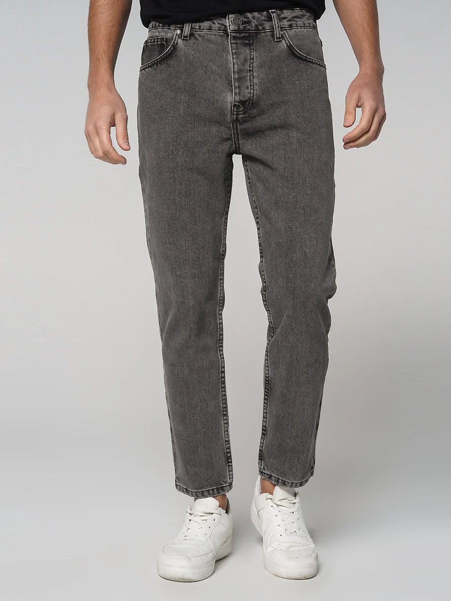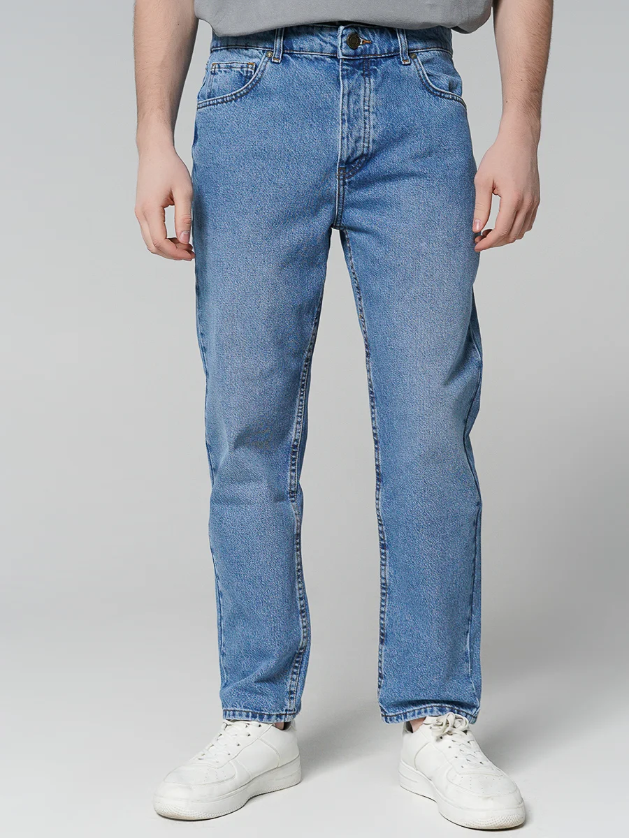 +Подробнее- Прямые мужские джинсы, зауженные книзу, из качественного хлопкового денима с легким линялым эффектом