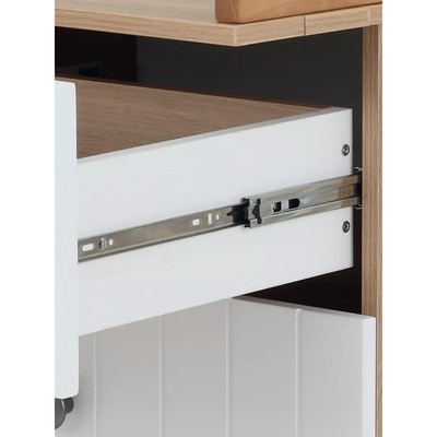 • К тому же ящики дополнены специальными телескопическими направляющими, благодаря которым комод способен выдерживать большие нагрузки на протяжении длительного времени