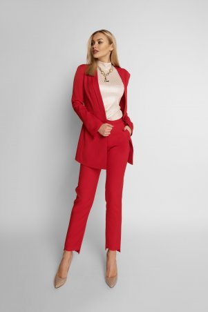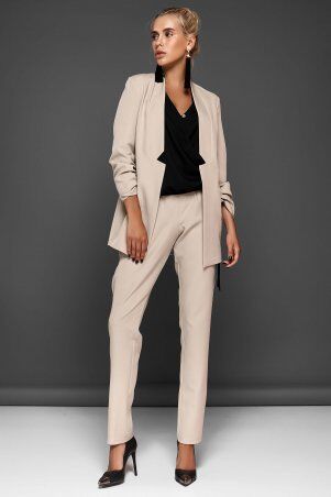 +ПодробнееКомфортный прогулочный костюм выполнен из ангоры. Свитшот прямой формы на манжете, украшает по переду красивая брошь в виде модной пчелы в камнях (купить можно в разделе «Аксессуары»). Но главная интрига в этой модели – спинка, на которой красуется шикарная кокетка в запах, декорированная кружевом. Брюки средней посадки на манжете по бокам врезные карманы.