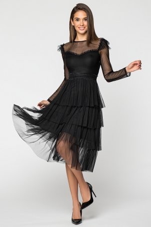 Легкое летнее платье из тонкого поплина со спущенными плечами и воланами. По низу платья широкая оборка. Комплектуется поясом из основной ткани.