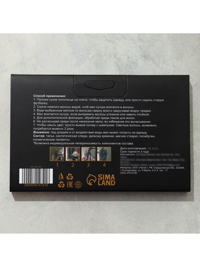 Составляющие набора: Мел для волос;