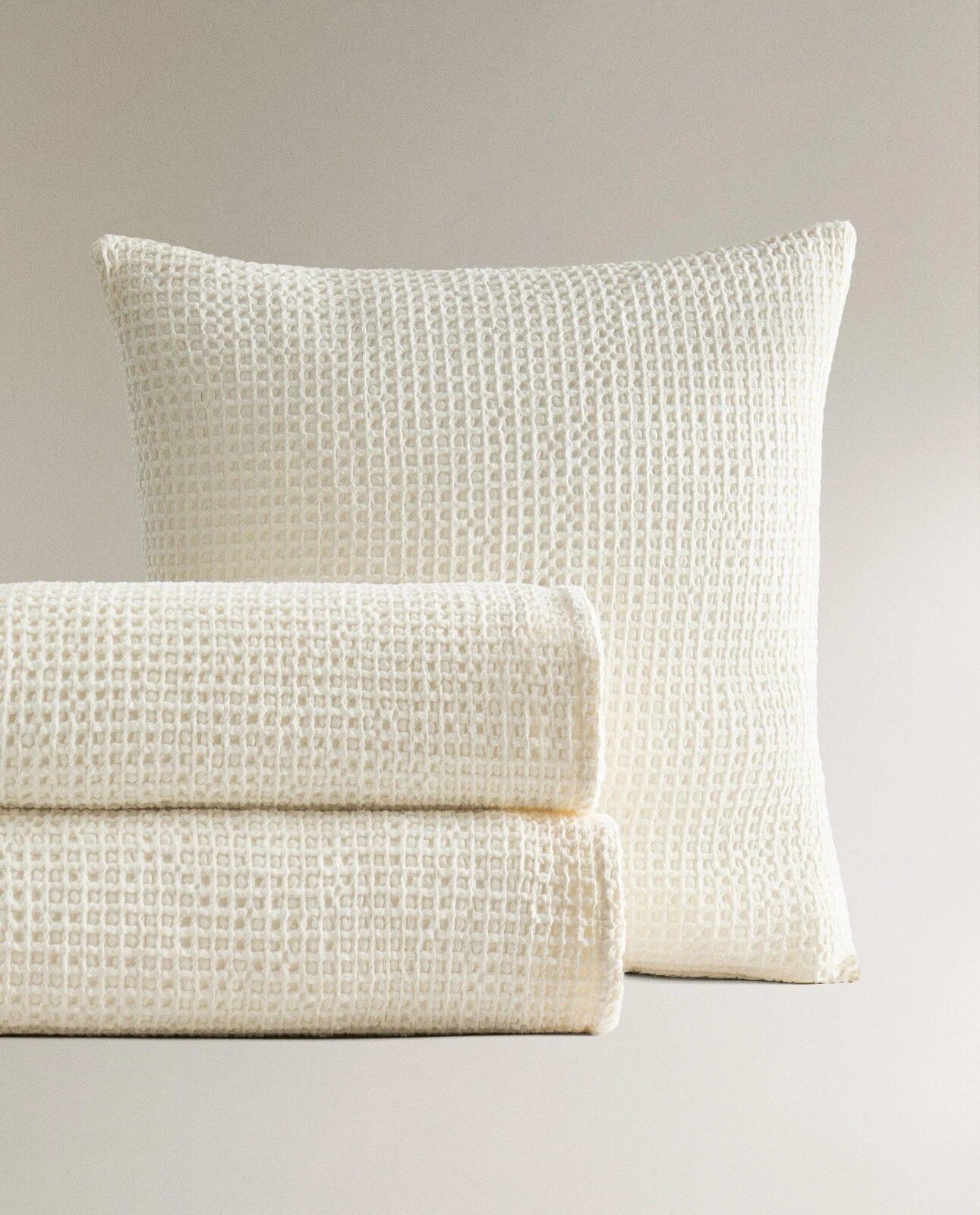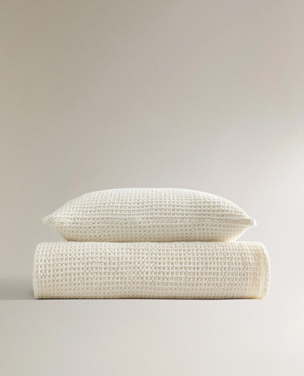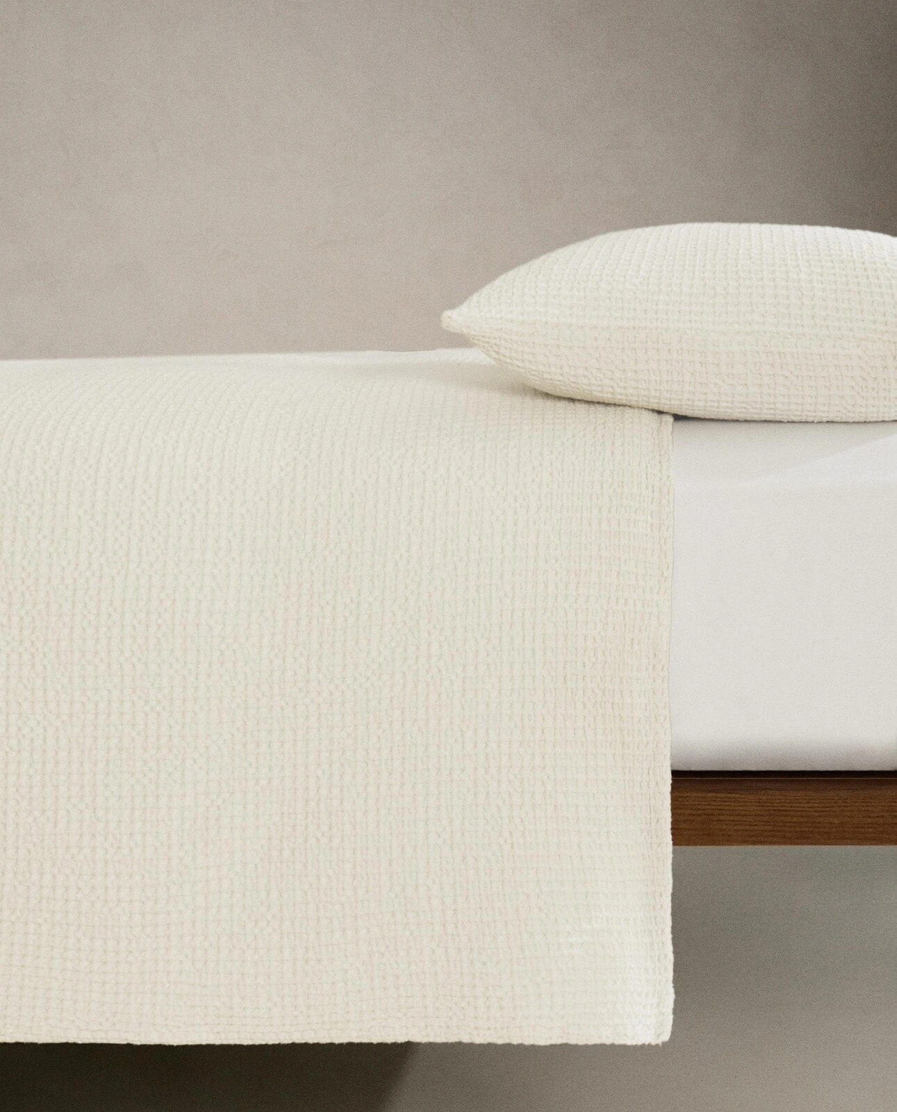 Plain textured cotton bedspread with a mini waffle-knit design.