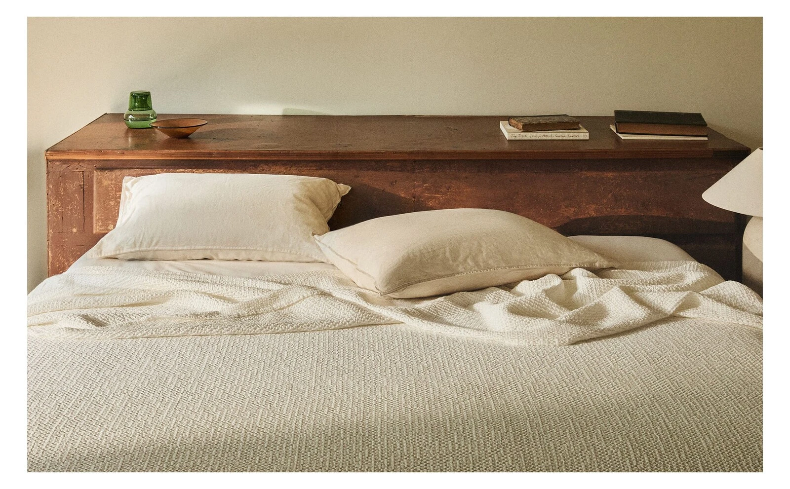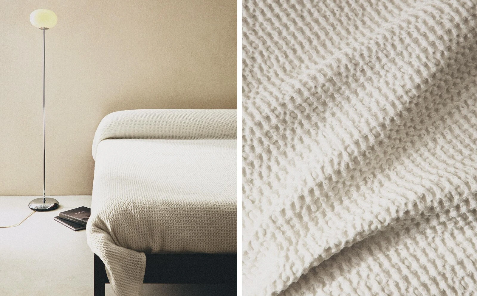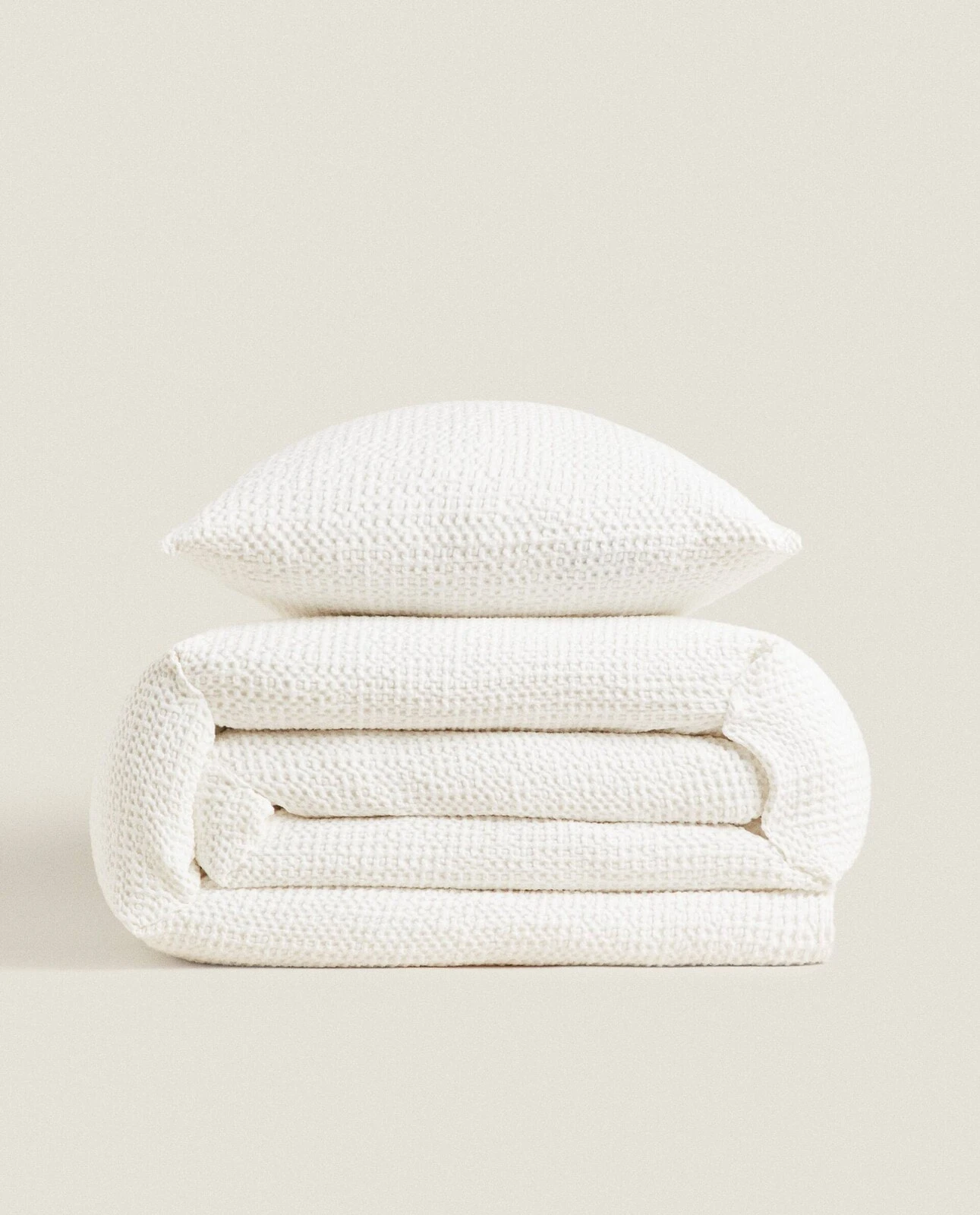 Plain textured cotton bedspread with a mini waffle-knit design.