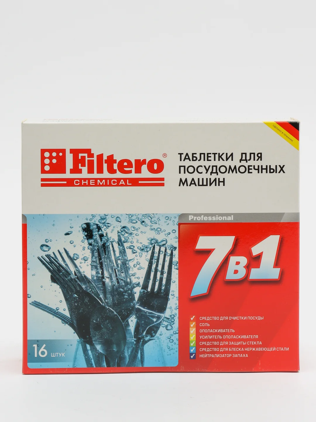 Предотвращает отложения на посуде и в посудомоечной машине;