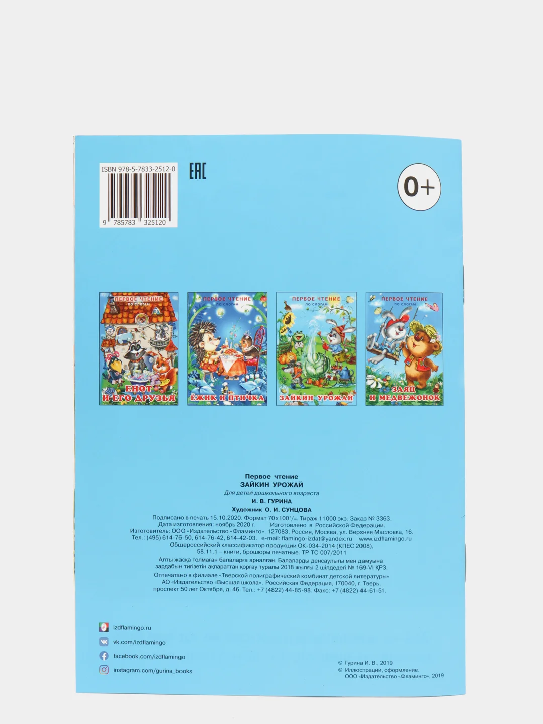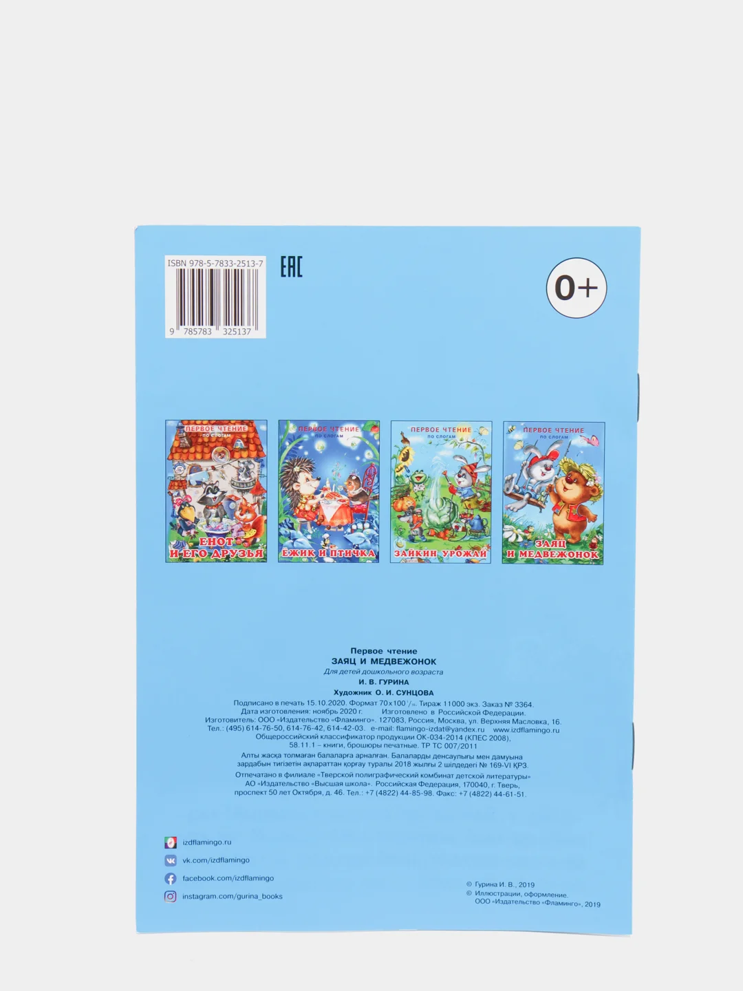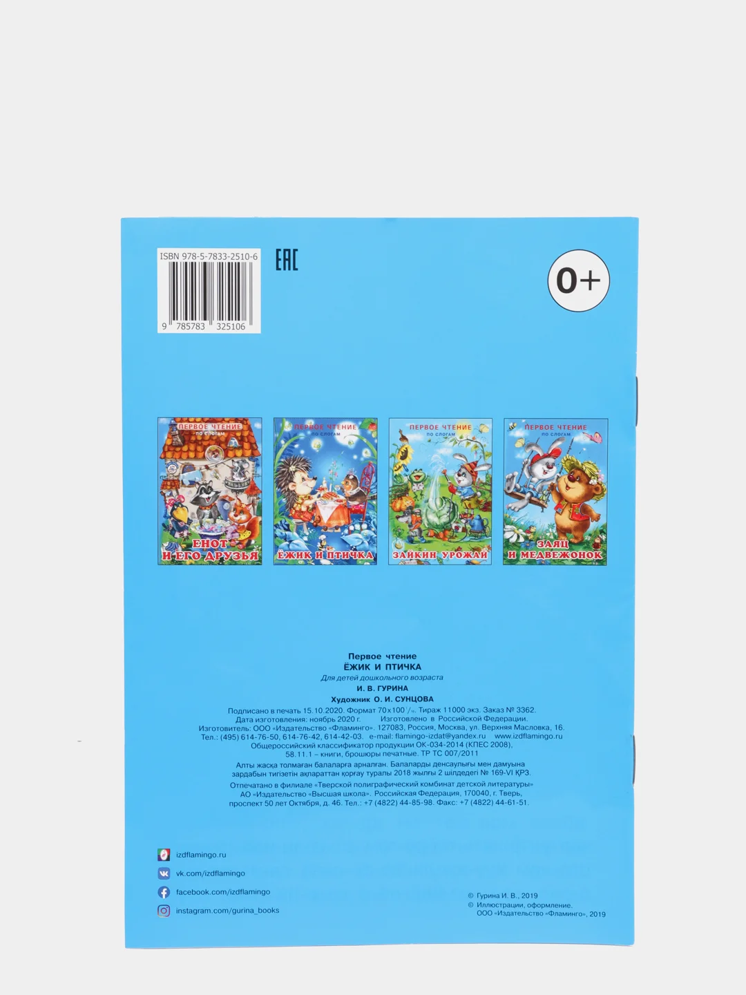Серия из 4 небольших книг в мягкой, тонкой обложке. Во всех изданиях 14 страниц, бумага мелованная. В этой серии объединены короткие весёлые сказки для детей, начинающих читать самостоятельно. Чтобы процесс обучения чтению не был скучным, основную часть разворотов занимают яркие, забавные иллюстрации Ольги Сунцовой. Небольшие добрые истории Ирины Гуриной расскажут юным читателям о дружбе, взаимопомощи и трудолюбии. Все тексты очень простые, разбиты на слоги. Шрифт крупный. В серии изданы сказки: Енот и его друзья Ёжик и птичка Зайкин урожай Заяц и медвежонок.