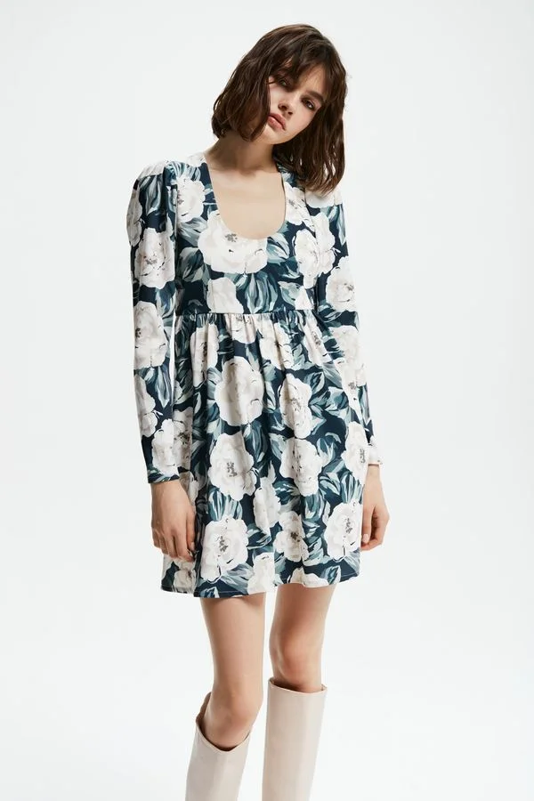 +Подробнее- Мини-платье А-силуэта с ярусной юбкой