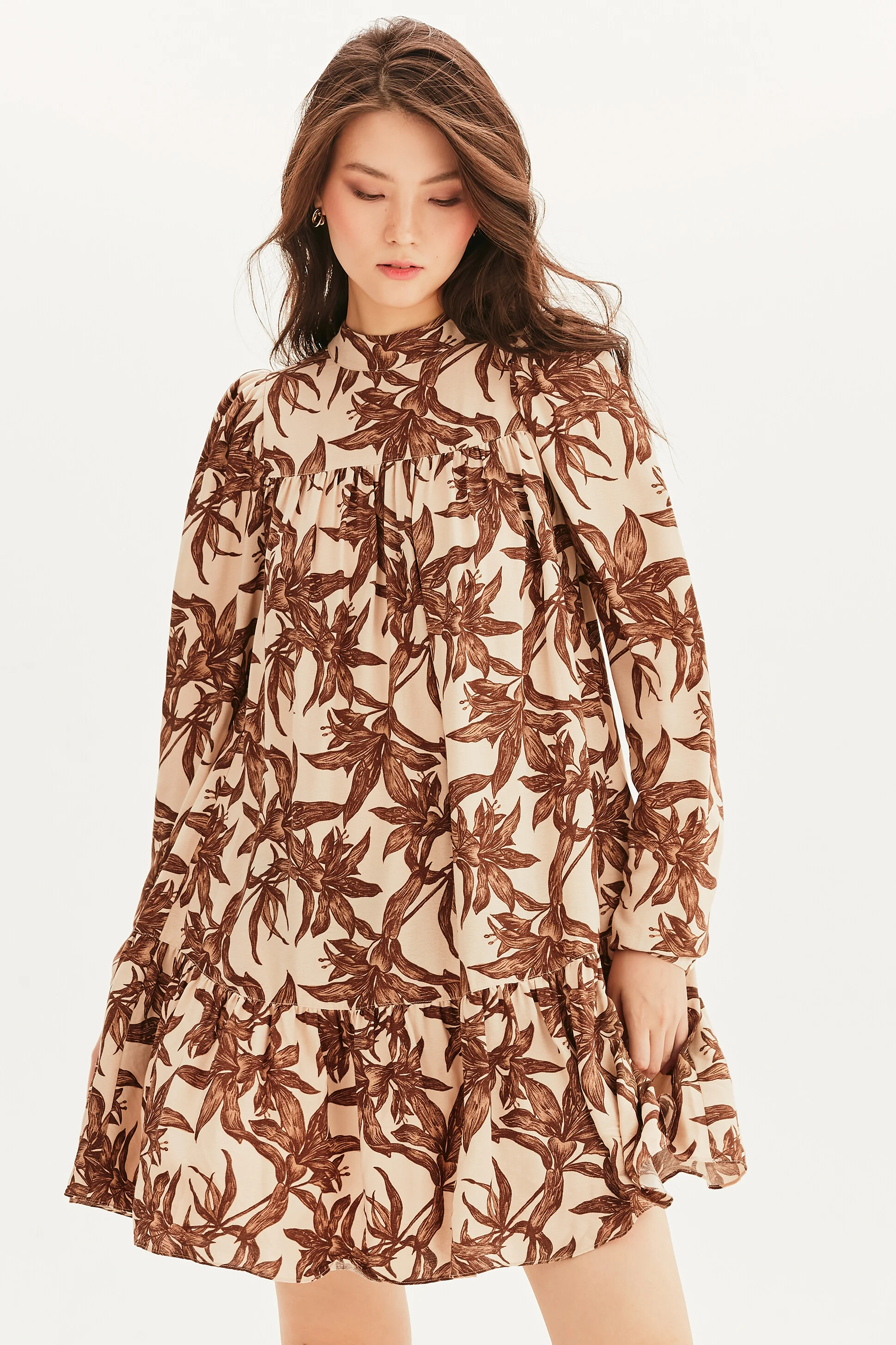 +Подробнее- Короткое приталенное платье мини полуприлегающего покроя из гладкой, дышащей 100% вискозной ткани