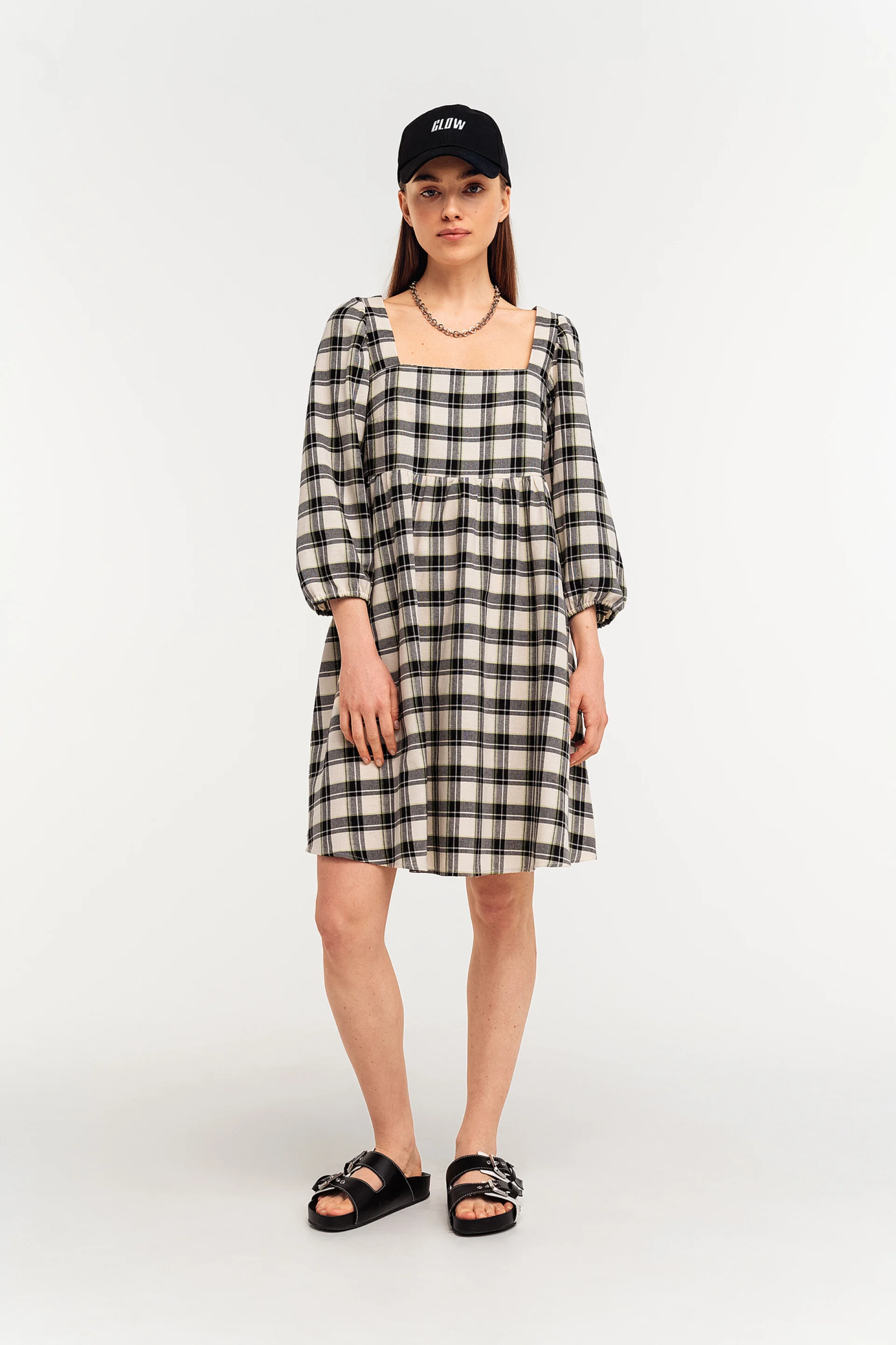 - Короткие рукава-фонарики на эластичной резинке