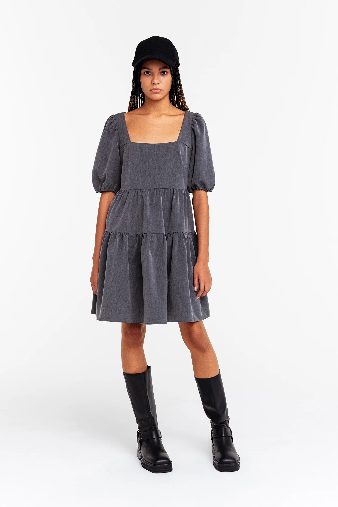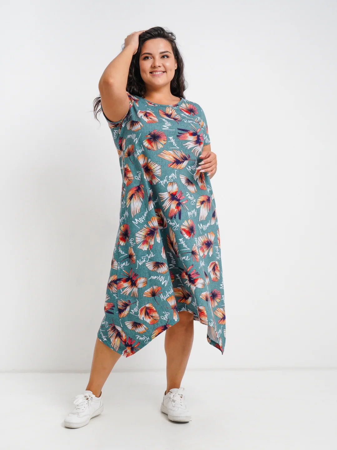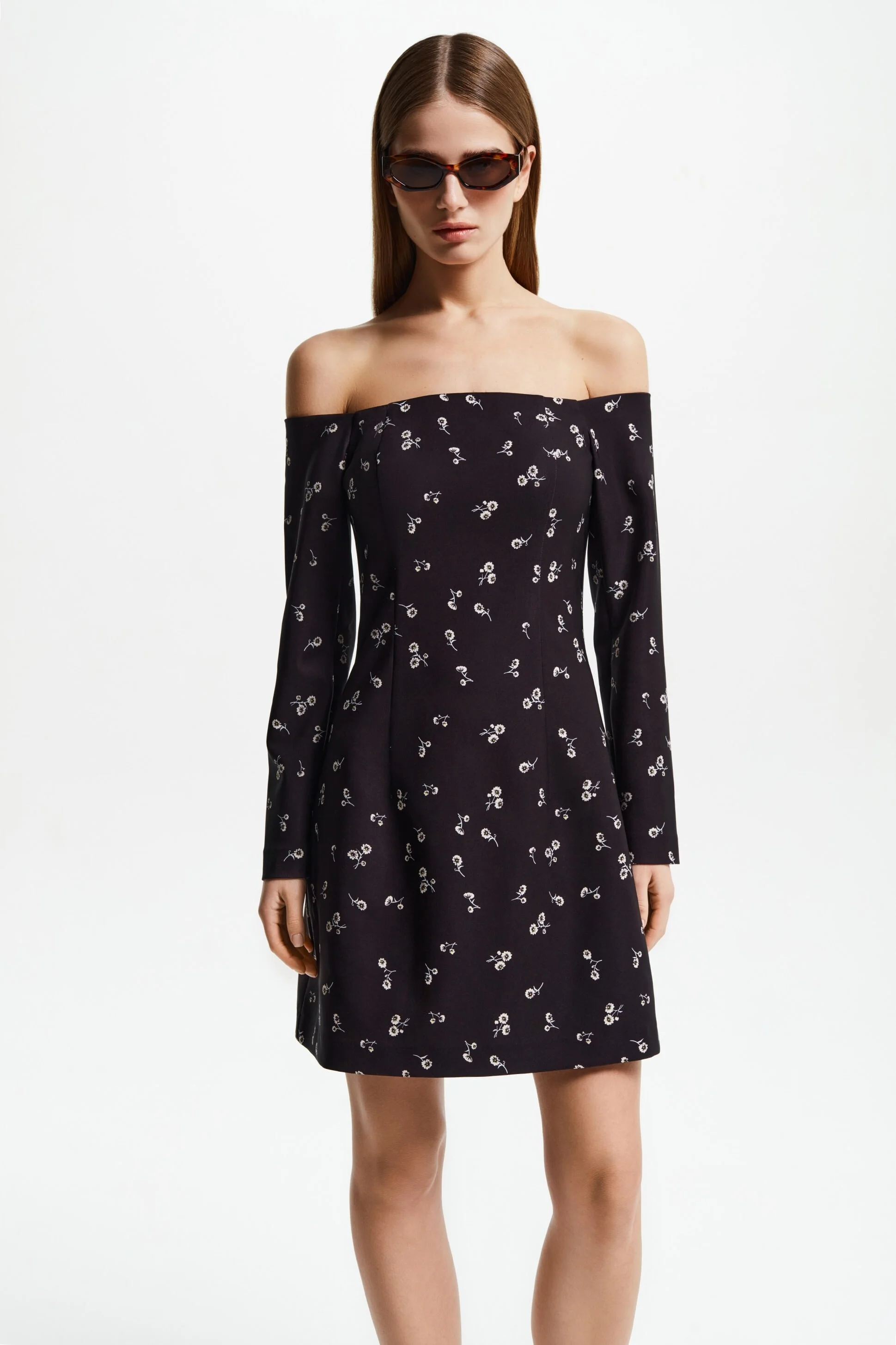 Размер одежды: L, M, XSМини-платье свободного кроя с длинными рукавами