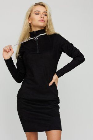 Платье длиной выше колена из легкой ткани, впереди неглубокий вырез, рукав длинный широкий с манжетами, по низу изделия волан; застежка: пуговица сзади