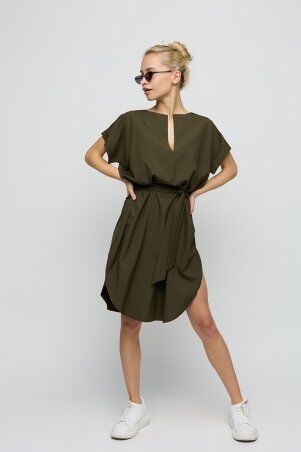 Платье длины миди из легкой принтованой ткани. Открытые плечи; вырез каре; по талии сборка на резинку; на правой ноге разрез.