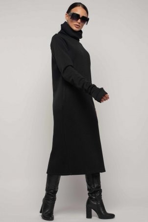 +ПодробнееПовседневно-офисное платье длиной макси прямого силуэта, с углубленной V-образной горловиной – свободное и комфортное. По переду платья идет центральный шов, в боковых швах расположены карманы и по низу платья разрезы. Свободный рукав со сборкой возле узкого манжета.