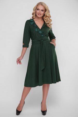 Платье-рубашка по колено с разноуровневым низом и центральной засткежкой на пуговицы. Воротник-стойка стояче-отложной. Рукав втачной рубашечный. По полочке нагрудная исходящая вытачка. Рост модели на фото 174 см.