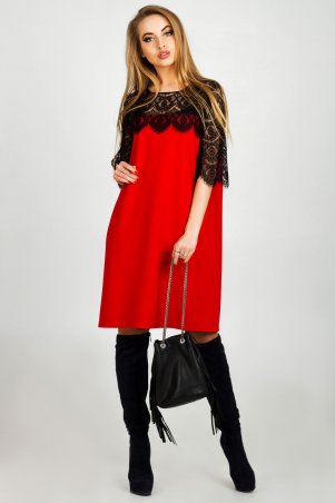 Платье из двух видов ткани: основная часть плотная, мягкая вискоза вторая расклешенное платье с оборкой по низу из легкой сетки. Рукава короткие, немного расклешены, выполнены из сеточки без подкладки.