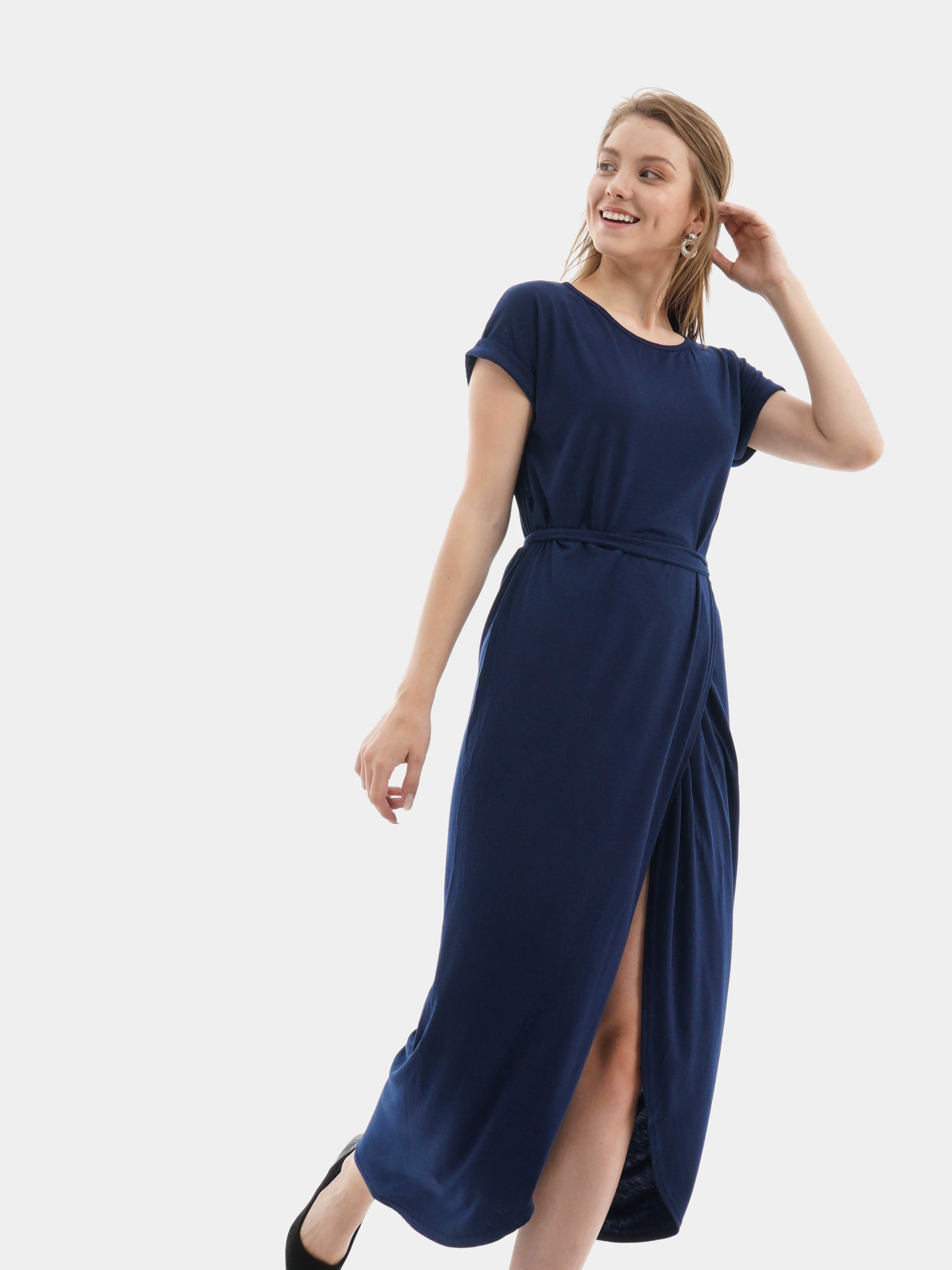 Стильное трикотажное платье станет отличной покупкой. Короткие рукава, линию талии подчёркивает пояс, юбка с запахом создаёт лёгкий, летящий образ. Отличный вариант для летней прогулки. Платье умеренно облегает, чтобы подчеркнуть достоинства фигуры и в то же время достаточно свободно, чтобы скрыть недостатки. Купить платье можно в магазине Belizo.