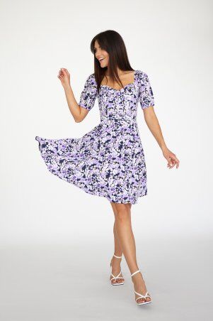 Шифоновое платье ARTMON с воротником, приталенное по талии, юбка -клеш, длина миди. По центру полочки выполена застежка на планку с пуговицами. Платье приталенное спереди рельефами, спинка с талиевыми выточками. Рукава вшивные, длина 3/4, низ рукава собран на резинку. Полочка и юбка выполнены с трикотажной подкладкой.