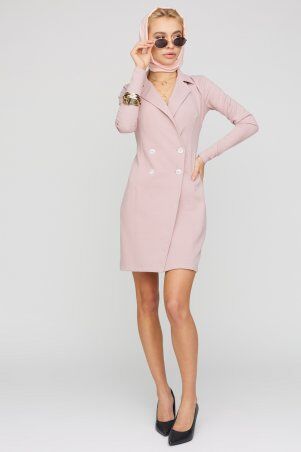 Платье длиной выше колена из легкой ткани, впереди неглубокий вырез, рукав длинный широкий с манжетами, по низу изделия волан; застежка: пуговица сзади
