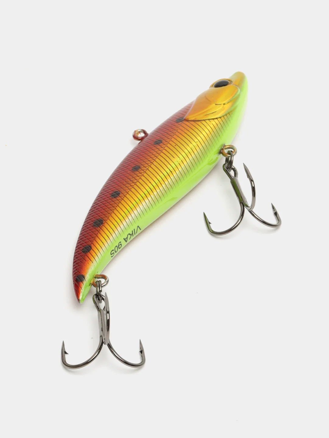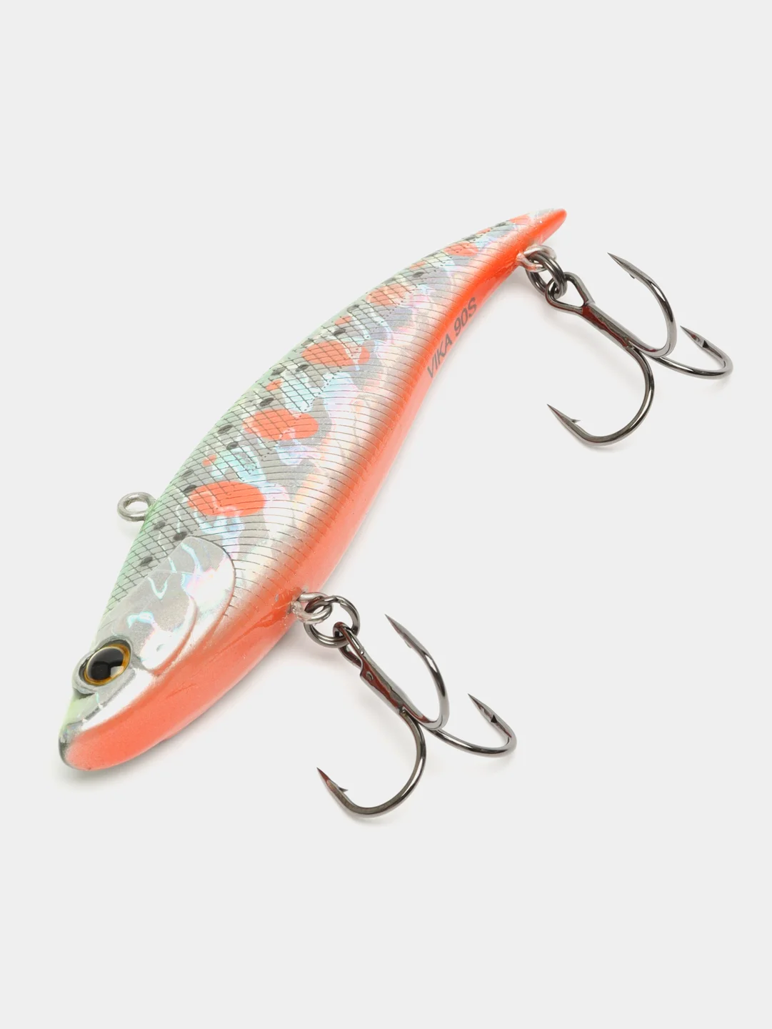 Особенности дизайна: VIKA 90S имеет две, разделенные боковой линией, рельефные фактуры поверхности. Верхняя часть выполнена в виде ромбовидных насечек - чешуек, нижняя (вплоть до брюшка) в виде косых насечек. Головная часть воблера рельефно имитирует жаберные крышки рыбки, а вклеенные 3D глаза завершают дизайн приманки. VIKA 90S оснащен двумя тройниками соответствующего размера, а так же надежной фурнитурой и силовыми заводными кольцами. Качественное лако-красочное покрытие и широкая цветовая гамма в каталоге.