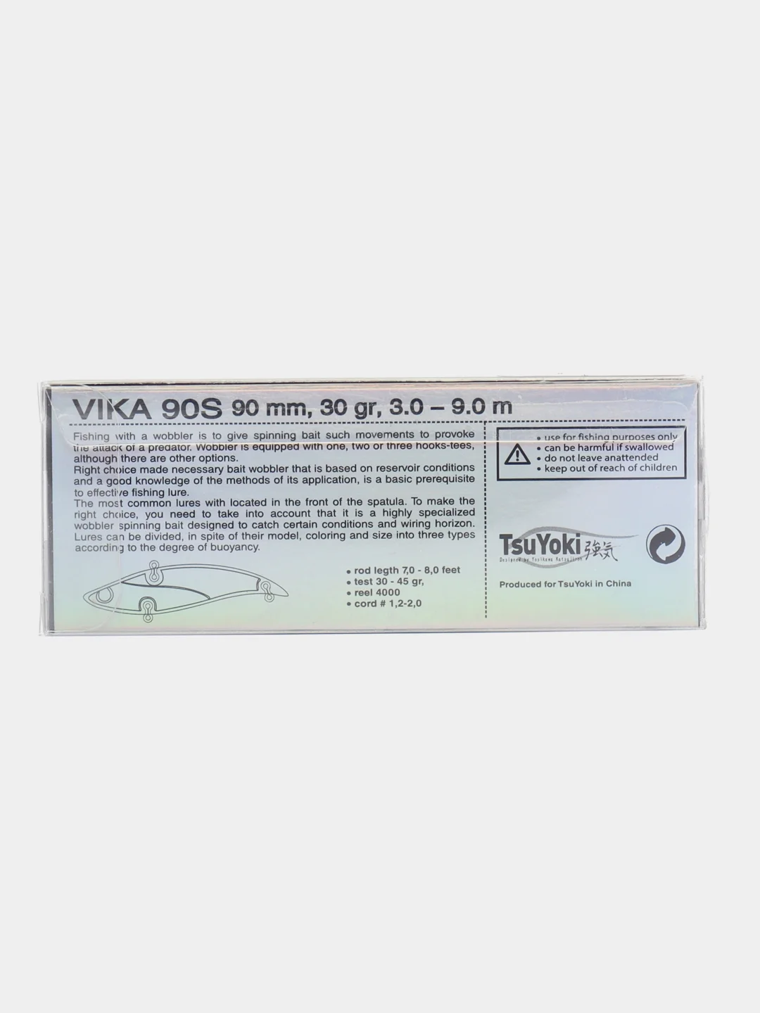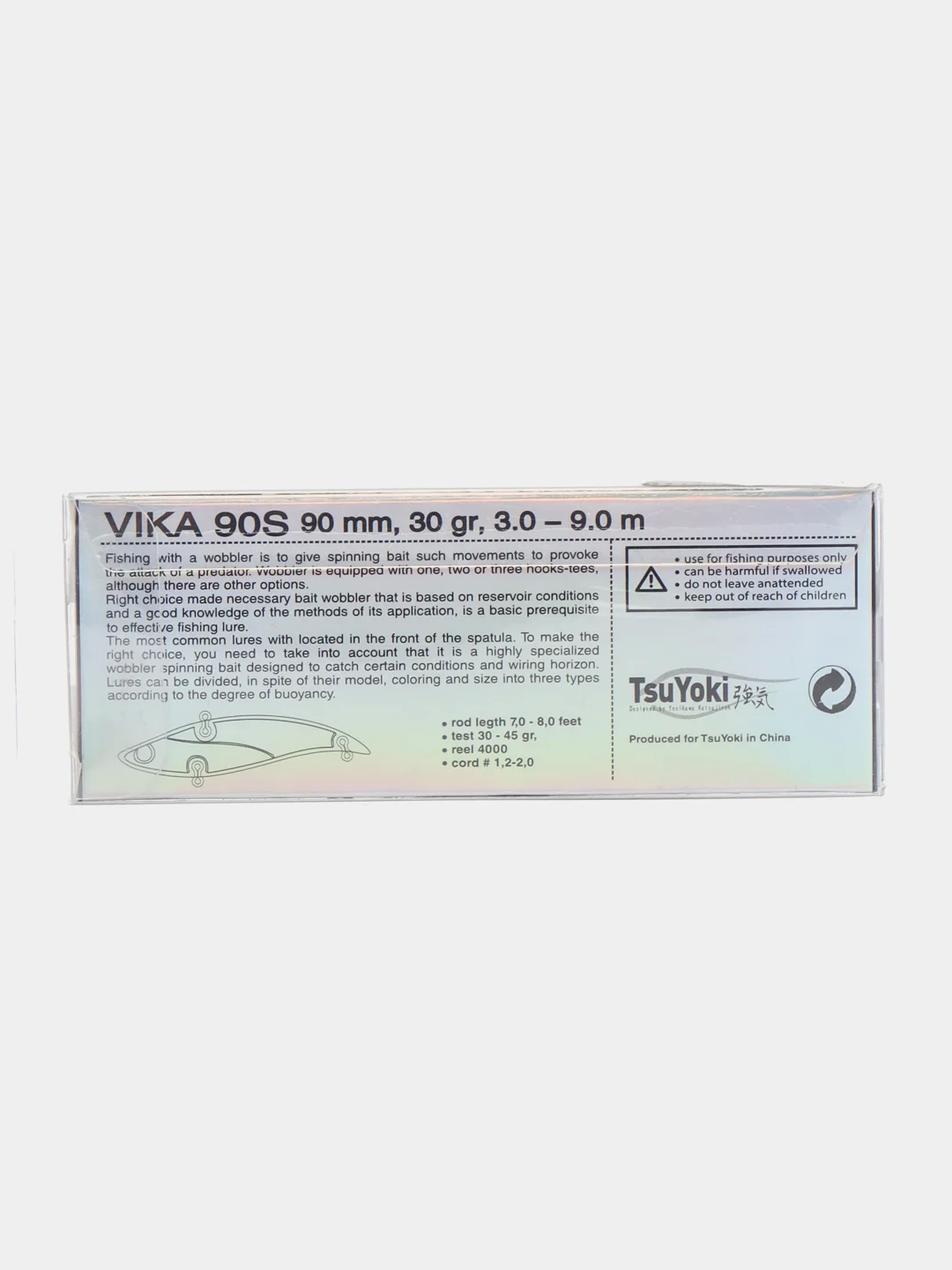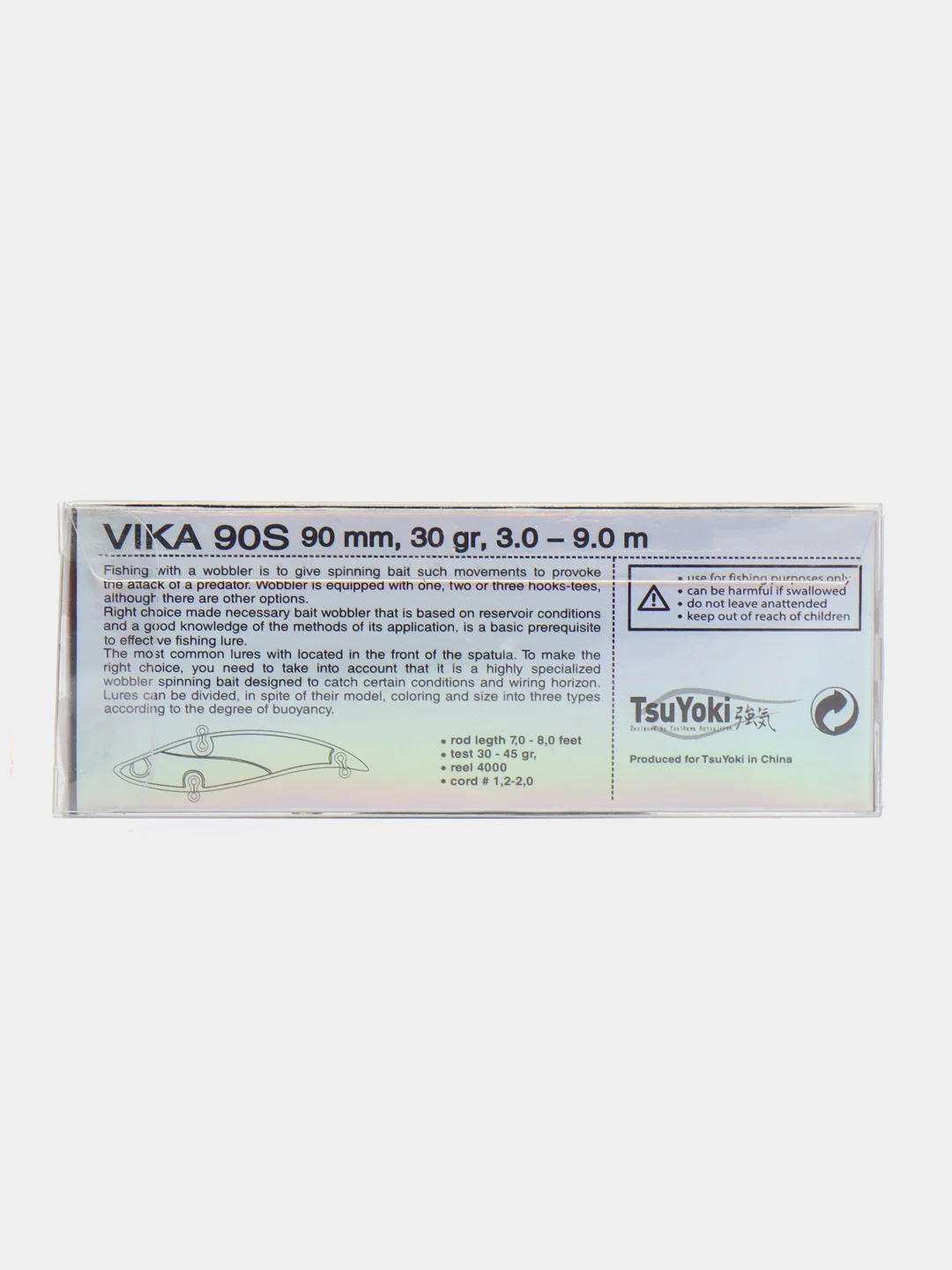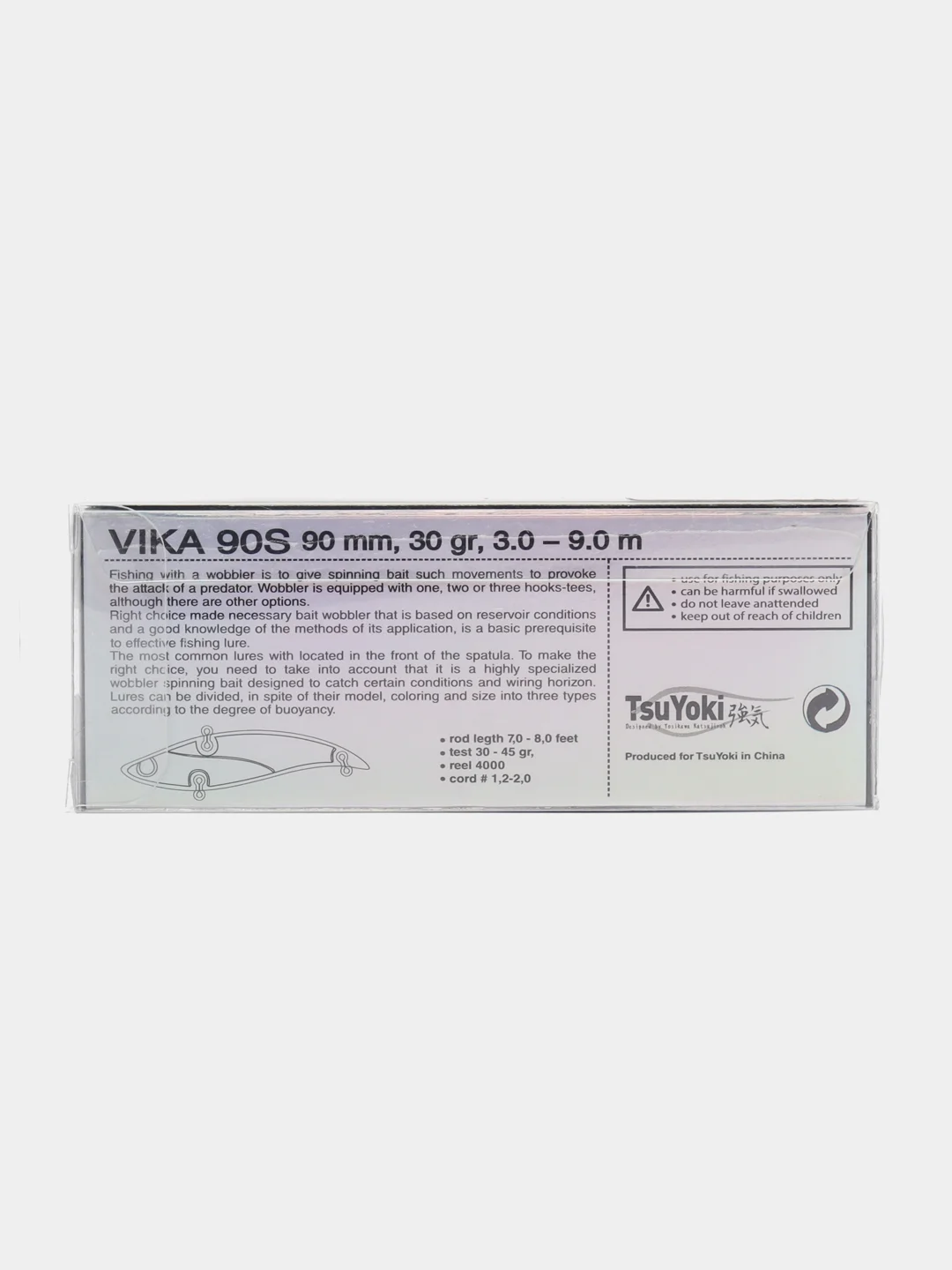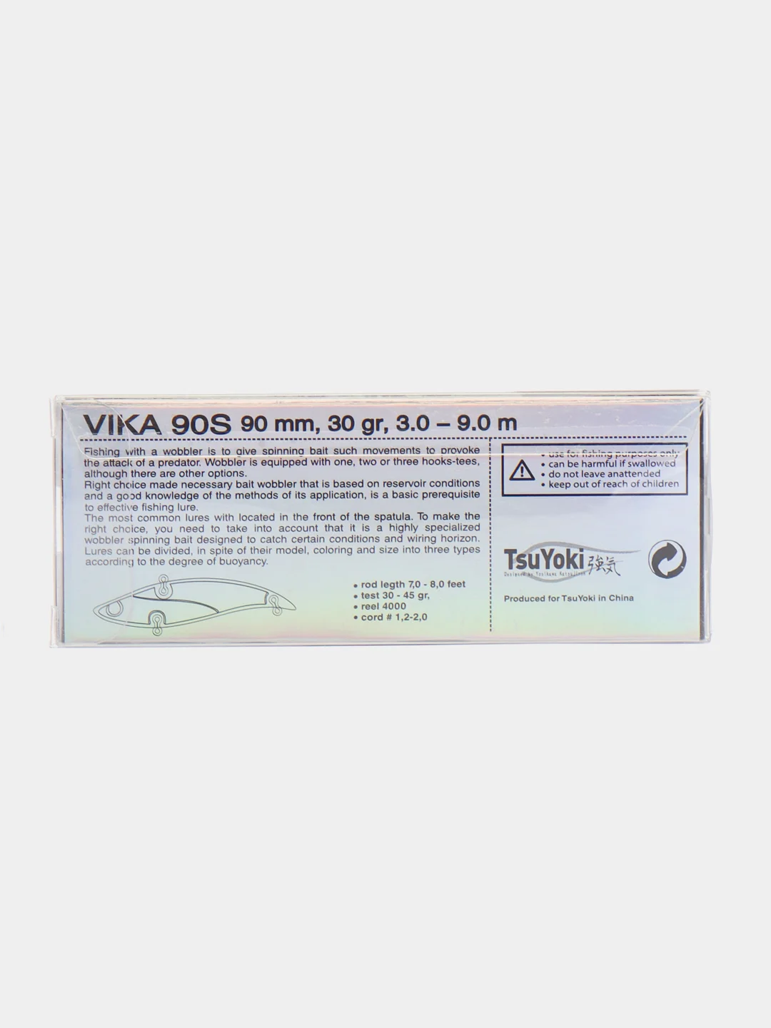 Не обойдем вниманием и еще один метод работы с VIKA 90S – вертикальный джиггинг. Его можно осуществлять с лодки, продвигаясь сплавом по течению вдоль выбранного рельефа, а так же при постановке над конкретной корягой, бугром или ямкой. Серьезный собственный вес VIKA 90S позволит рыболову точно подавать приманку даже при наличие ощутимого течения. Метод применим и при ловле зимой со льда на больших глубоких водохранилищах, озёрах и реках при охоте за судаком, бершом, щукой и налимом.