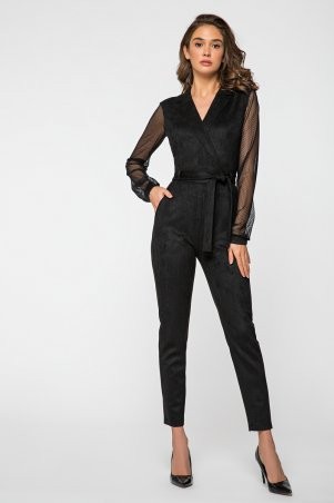 Модный ромпер из эко-кожи на замше с металлической фурнитурой. Пояс в комплекте. Длина по спинке до талии -18 см; длина по внешнему шву от проймы - 56 см.