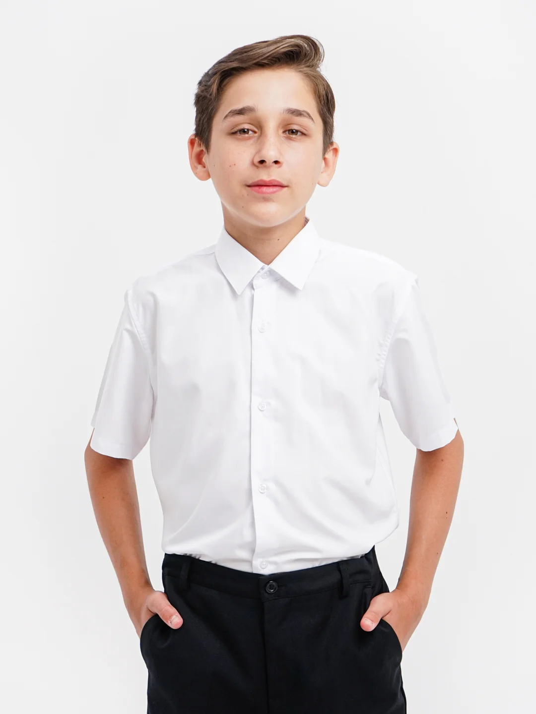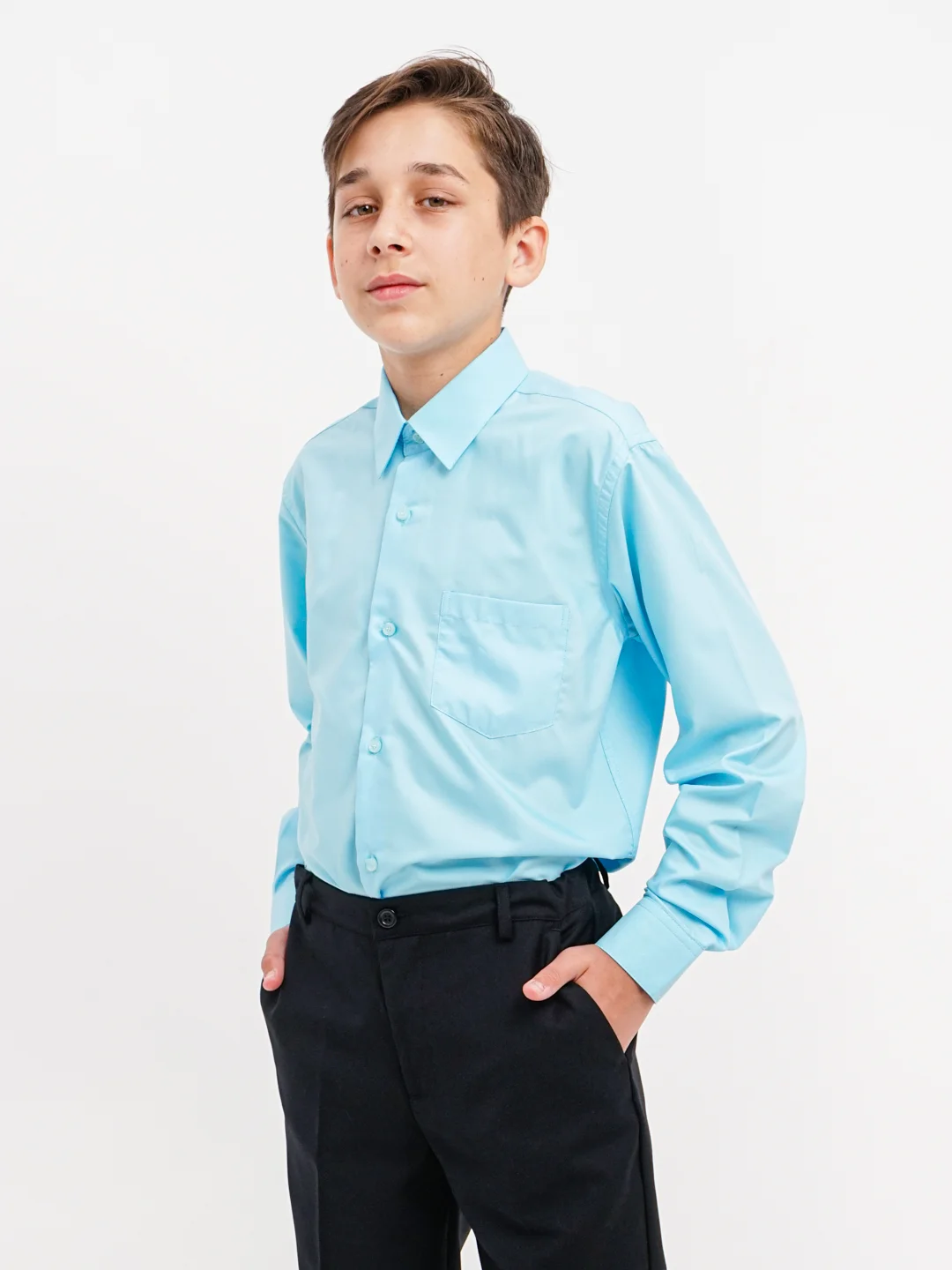 Базовая школьная рубашка из натуральной, "дышащей", хлопковой ткани.