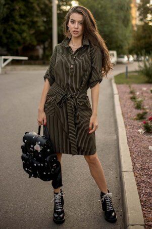 Однотонное платье свободного кроя с кружевом по низу изделия и рукавам. Без застежек.