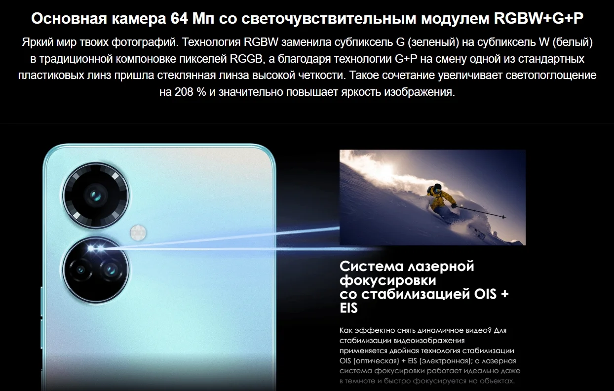 Камера 64 Мп для ярких ночных портретных снимков (OIS)