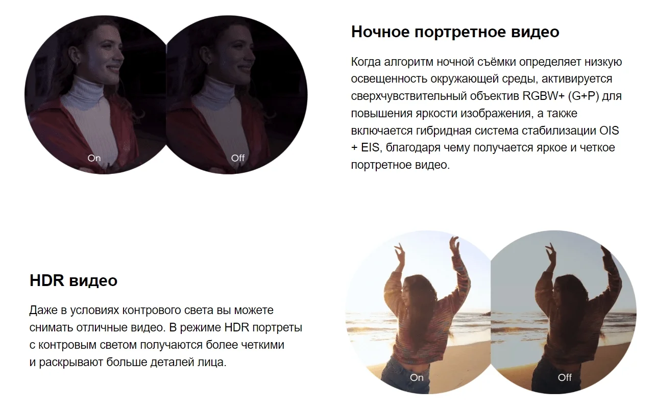 Функции камеры: Искусственный интеллект (ИИ), Лазерная автофокусировка, Оптическая стабилизация, Портретный режим, Распознавание лица, Серийная съемка, Съемка HDR-видео, Съемка HDR-фото, Съемка в условиях недостаточной освещенности, Цифровая стабилизация, Эффект боке