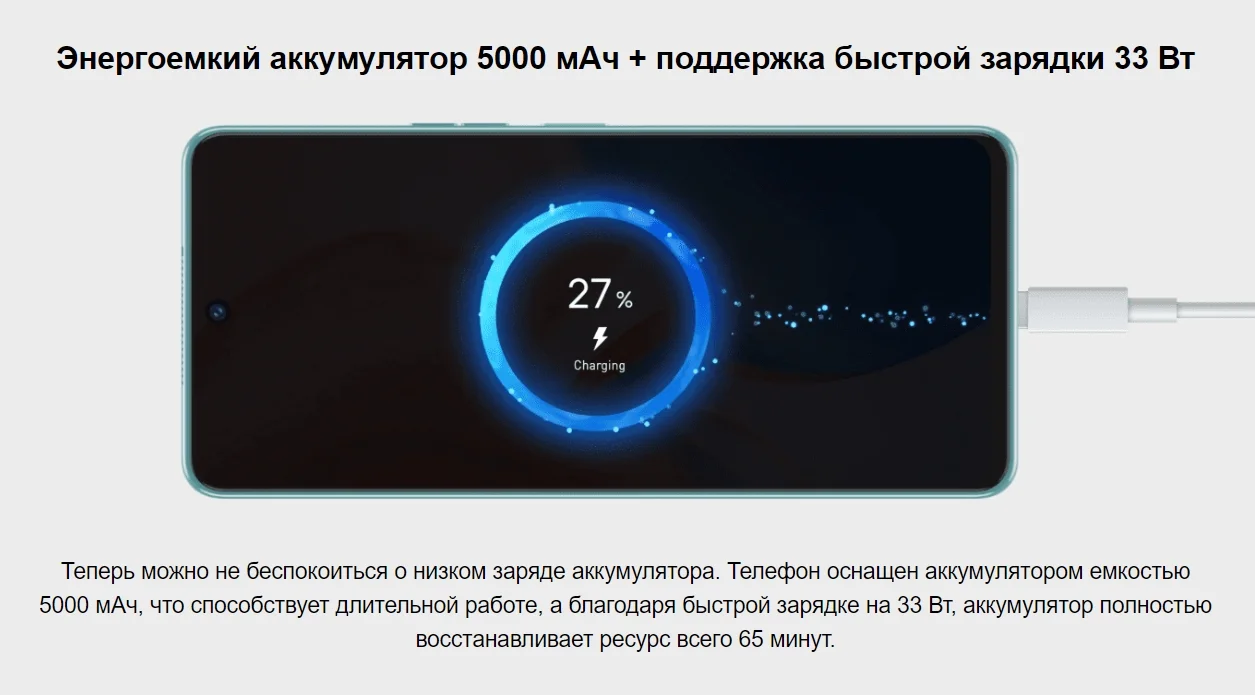 Особенности электропитания: Быстрая зарядка 33 Вт