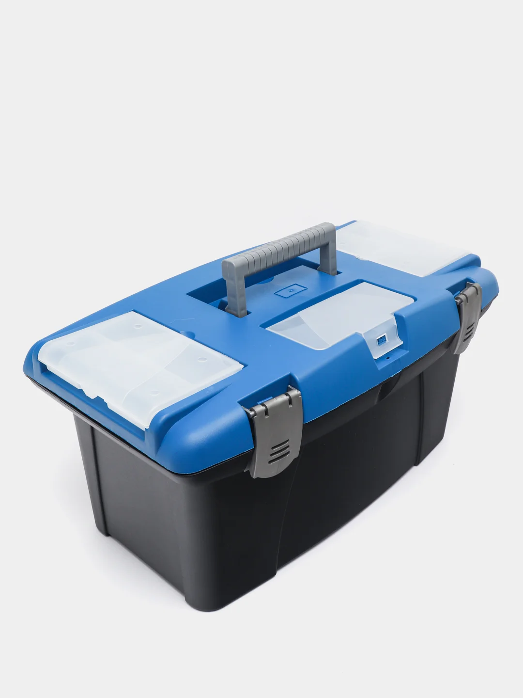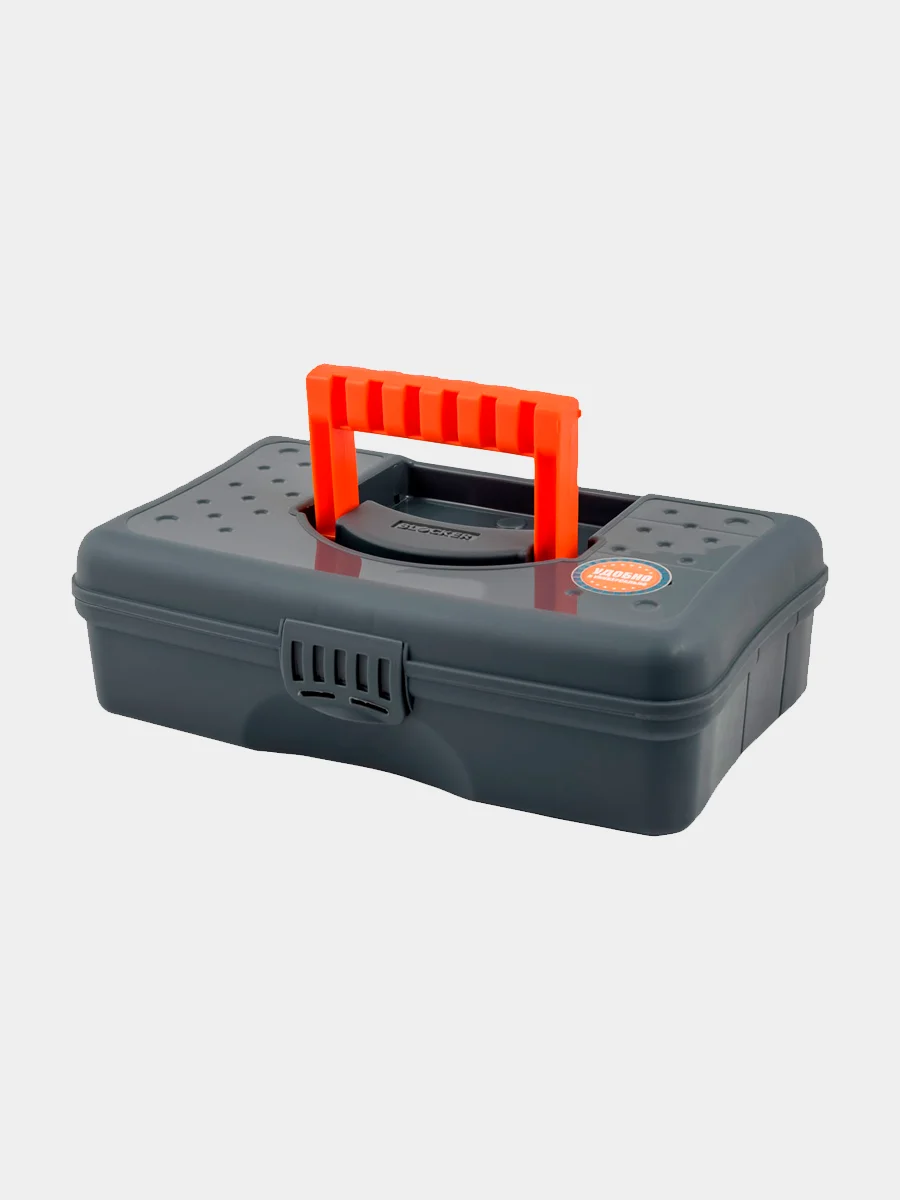Ящик для инструментов с вкладышем и замками изготовлен из прочного безопасного пластика. Модель учитывает все нюансы для удобства переноски инструментов, в ящике предусмотрены: