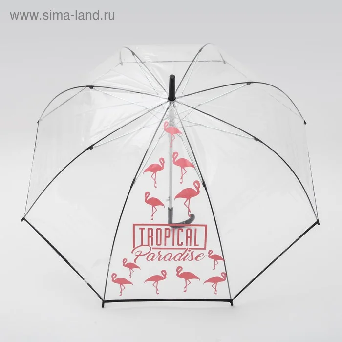 Купол - диаметром 85 см, с системой «антиветер», выполнен из высококачественного поливинила, на котором вода превращается в капли и стекает вниз, а сам зонт остается сухим. Купол сочетает в себе прозрачную часть с имитацией капель и яркий принт.