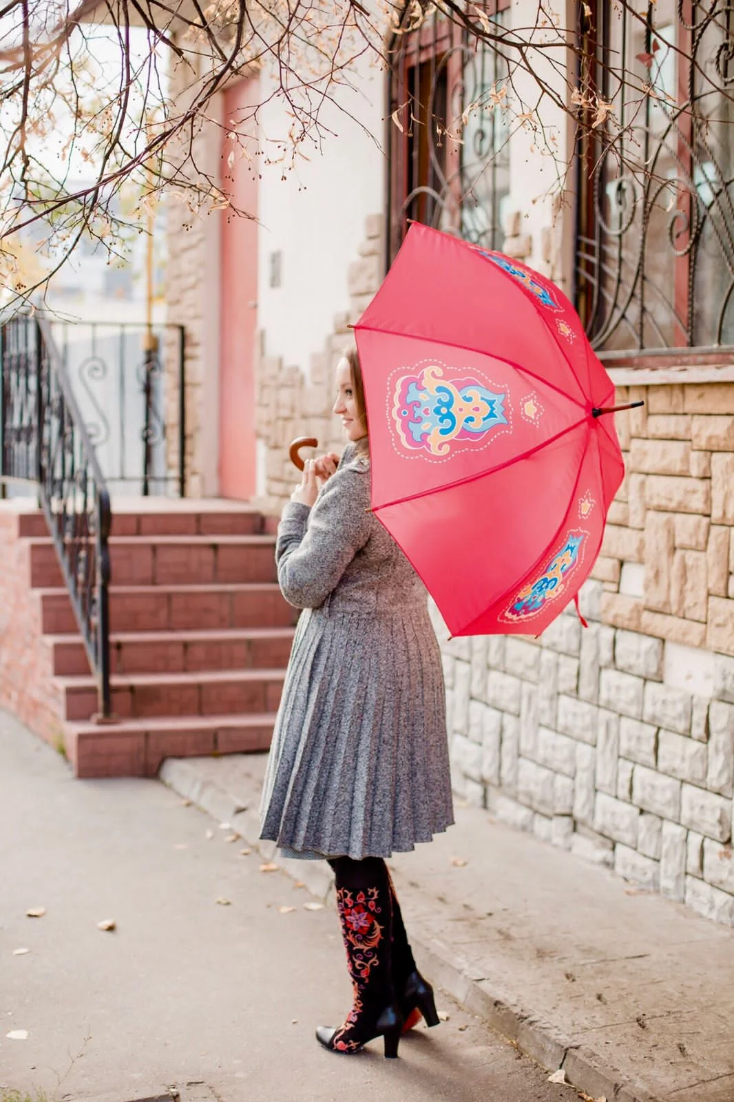 Зонт – трость, с механизмом полуавтоматического открывания.