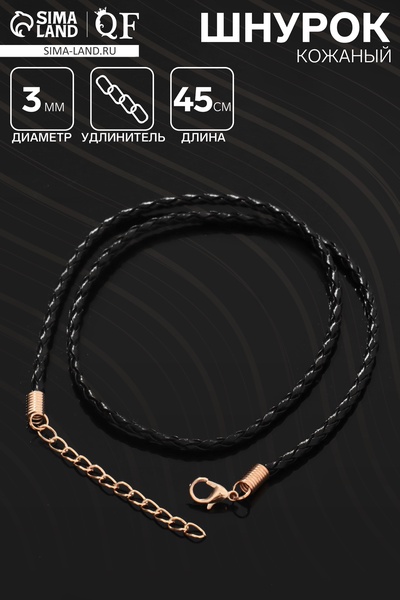 Шнурок кожаный d=3 мм, 45 см, чёрный в золоте...