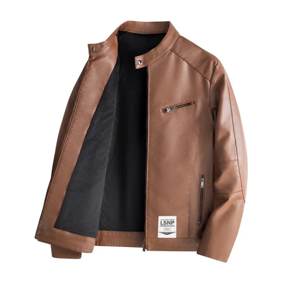 HUANQIU Leather Jackets Unisex Stand Collar M...